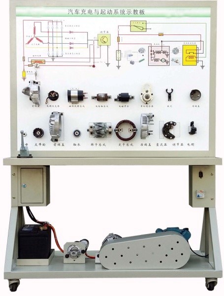 4.示教板面板上安裝有起動機與發(fā)電機總成分解部件,可直觀認識起動機與發(fā)電機的組成結構。