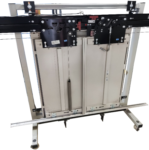 要求該裝置至少由鋼結(jié)構(gòu)框架、層門等部件組成。按電梯開門方式的不同,設備至少分為中分門跟旁開門兩種類型。整體外觀要求簡潔、實用,能夠直觀地看到層門機構(gòu)的全部器件及整個機械動作過程。