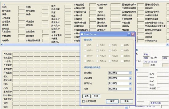 軟件可實(shí)現(xiàn)對內(nèi)機(jī)的控制,,可以對1-64臺(tái)內(nèi)機(jī)的狀態(tài)進(jìn)行設(shè)定。